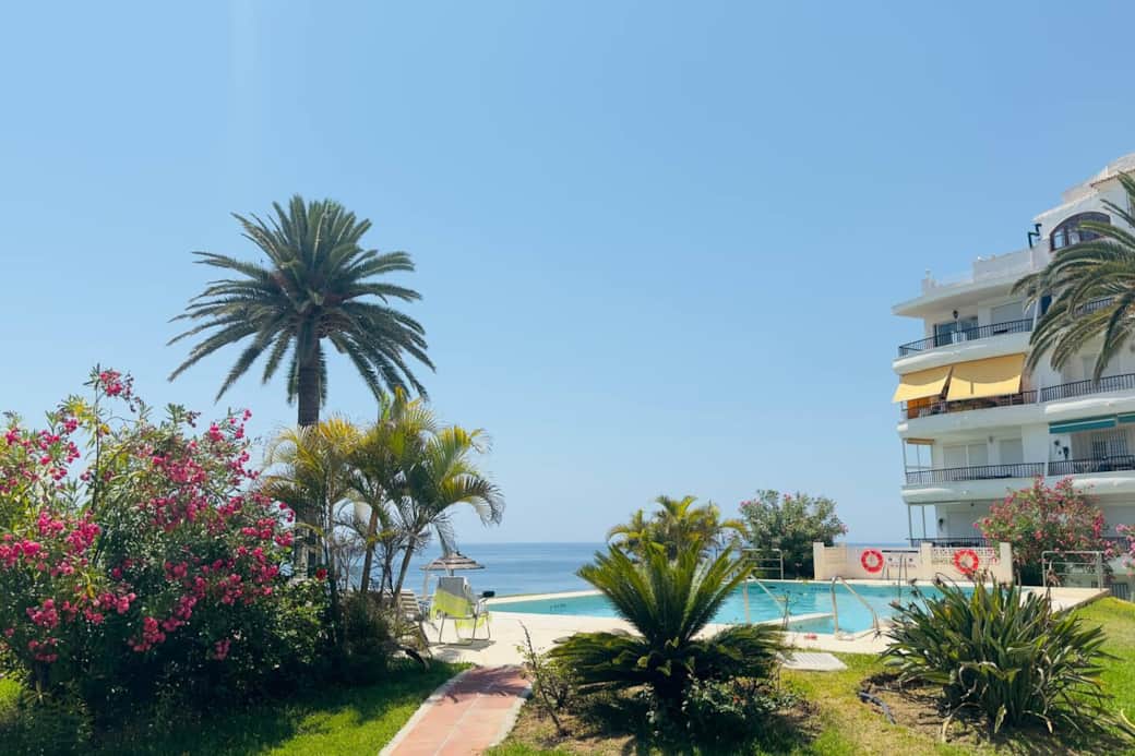 Apartment in Acapulco Playa, Nerja. Ideally located in the heart of the town in a quiet area. Garden with direct views of the Balcón de Europa and the sea, with no buildings in front. Communal pool and parking. Just a 5-minute walk from the Balcón de Europa and the beach is right below. Perfect for exploring all of Nerja on foot. Sleeps up to 4 guests thanks to the sofa bed.