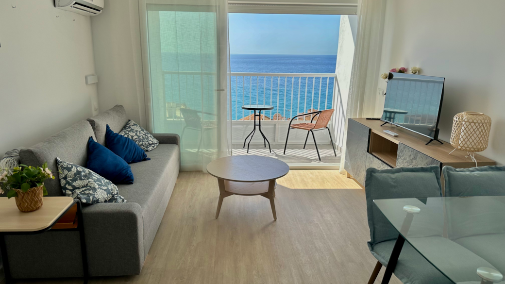 Disfrute de espectaculares vistas al mar Mediterráneo desde nuestro apartamento totalmente renovado y amueblado en el corazón de Nerja. Con 66 m², cuenta con 2 dormitorios, 2 baños, cocina totalmente equipada y un luminoso salón. Ideal para 6 personas, ofrece wifi, aire acondicionado, balcón y todas las comodidades necesarias. A solo 1 minuto a pie de la playa y a 5 minutos a pie del famoso Balcón de Europa. El lugar perfecto para unas vacaciones inolvidables en la Costa del Sol.